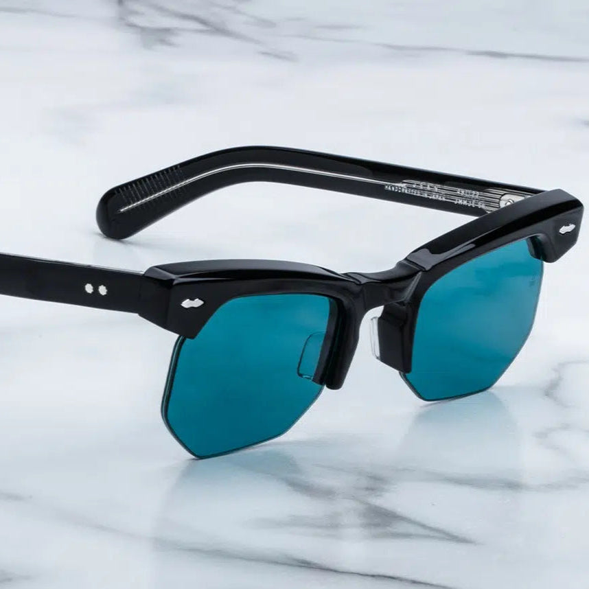 They have an elevated ‘40s lens shape with distinctive semi-rimless construction and exaggerated brow lines that give the Jean a sultry allure.